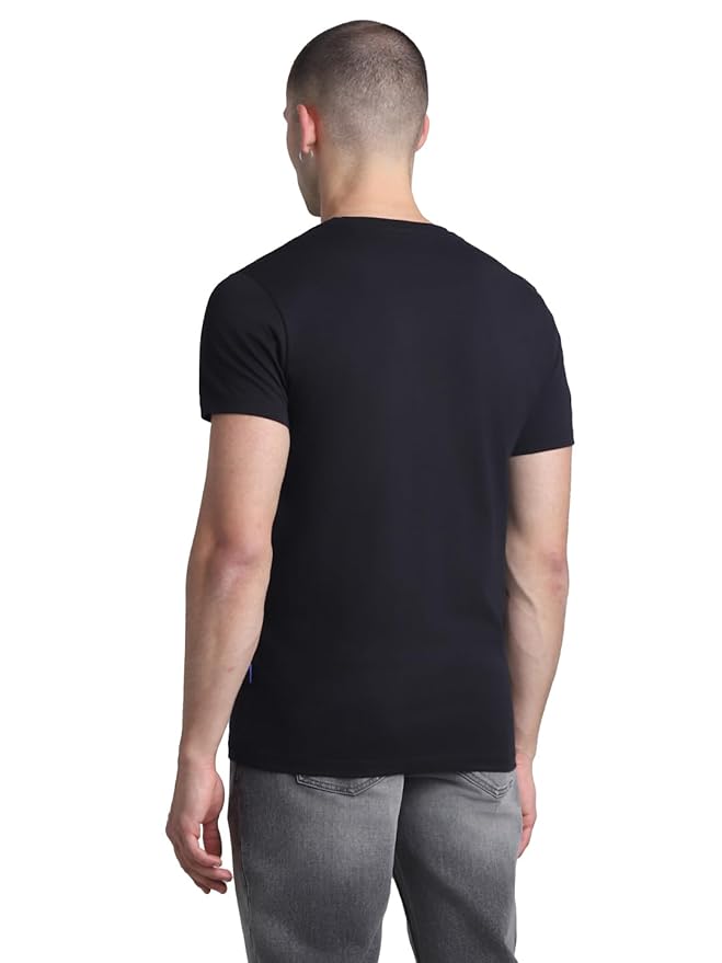 Designed with premium cotton-blend fabric, this slim-fit black tee offers modern comfort and a bold typography print across the chest.