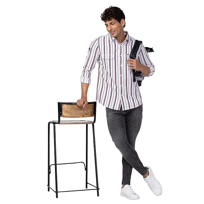 This Spykar Men Tan Pink Cotton Slim Fit Striped Shirt till 4XL is the ideal choice for men who love trendy casual wear. Team it up with your favorite denim or trousers for a stylish look suitable for outings, office casuals, or weekend gatherings.